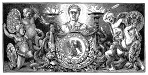 Il y a également représenté un médaillon entouré d’une couronne, au centre, est écrit :